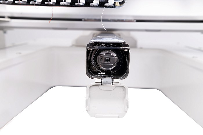 Поле вышивки ярко освещается с двух сторон LED подсветкой с возможностью её полного отключения. Для определения точного места вышивки удобно использовать лазерную указку, которую можно отключить по необходимости. Лазерный позиционер указывает точное место прокола иглы. В машине встроенный датчик обрыва нити. При обрыве верхней нити машина останавливается и можно вернуться на место обрыва по стежкам или по цветам.